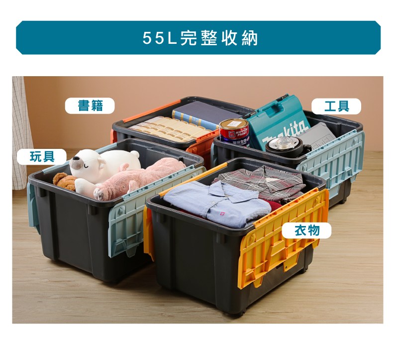 KEYWAY Lucky雙掀蓋整理箱/LX552/55L/黃/4入組