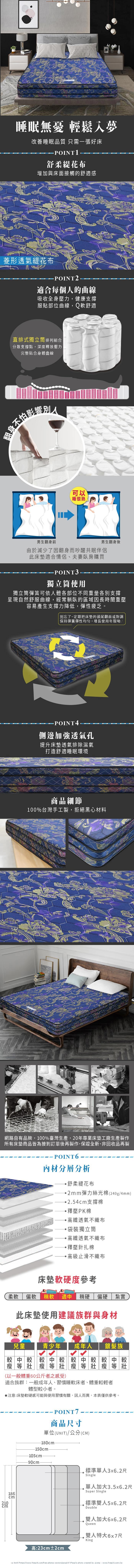 《新之森林》雅典多支撐蜂巢款獨立筒床墊-雙人加大6x6.2尺