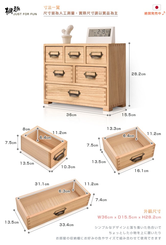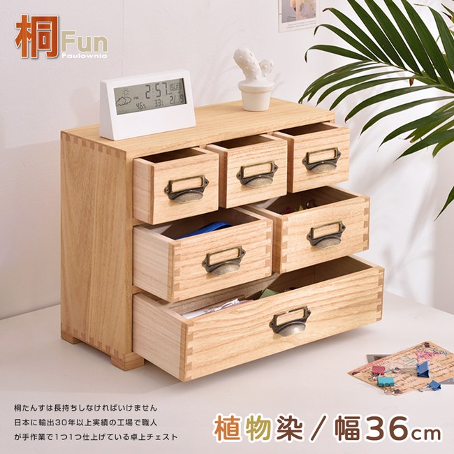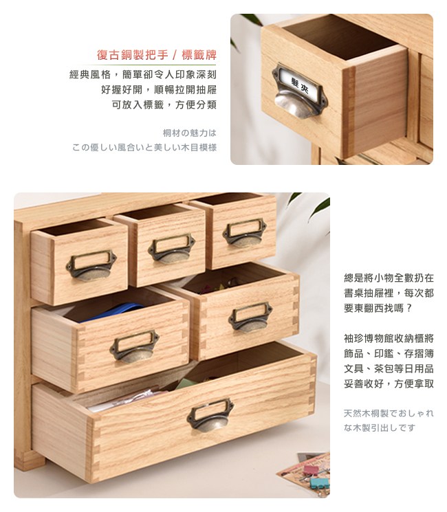 【桐趣】袖珍博物館三層6抽實木收納櫃-桌上型