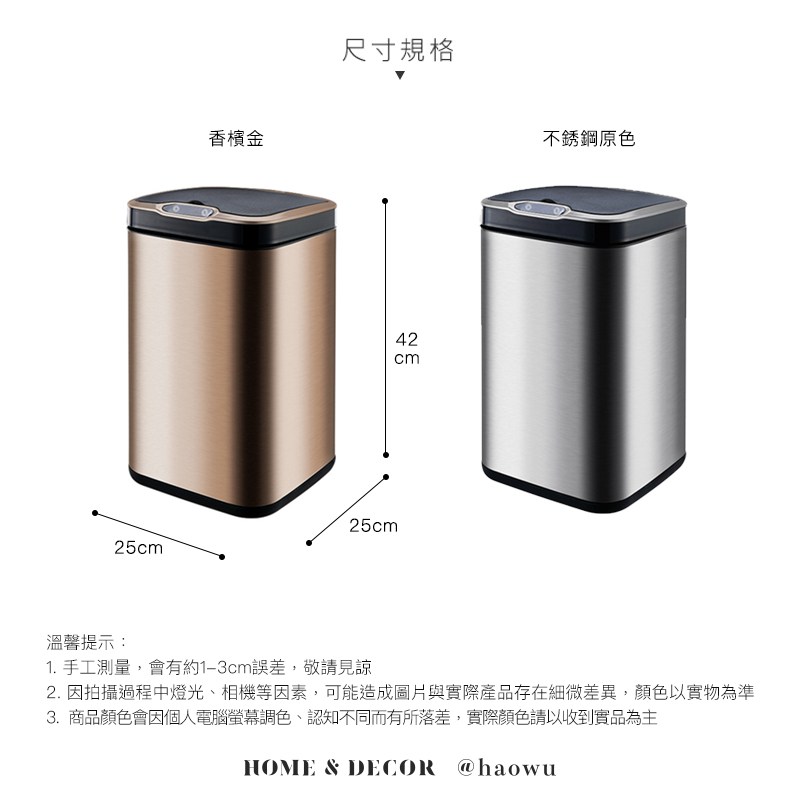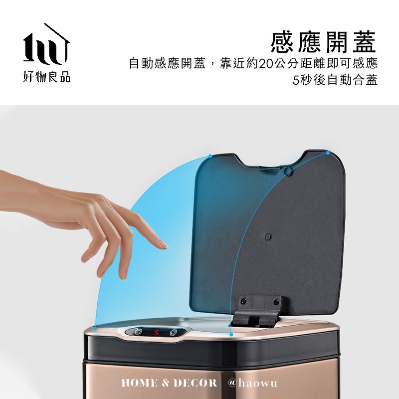 【好物良品】13L_不鏽鋼自動臭氧除臭殺菌智能感應式垃圾桶 廚餘回收桶-香檳金
