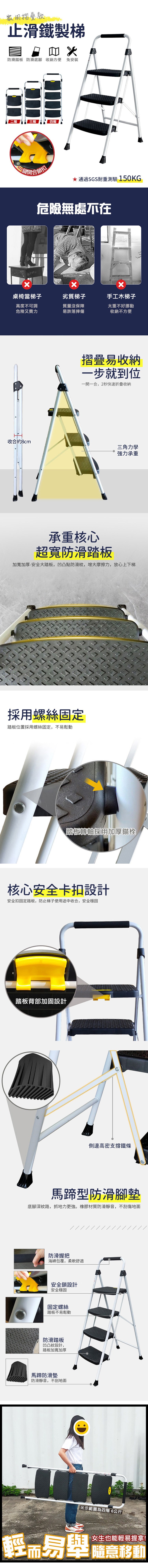 LOGIS|三階梯 安全折疊梯 工具梯 摺疊梯 家用梯 A字梯 防滑梯