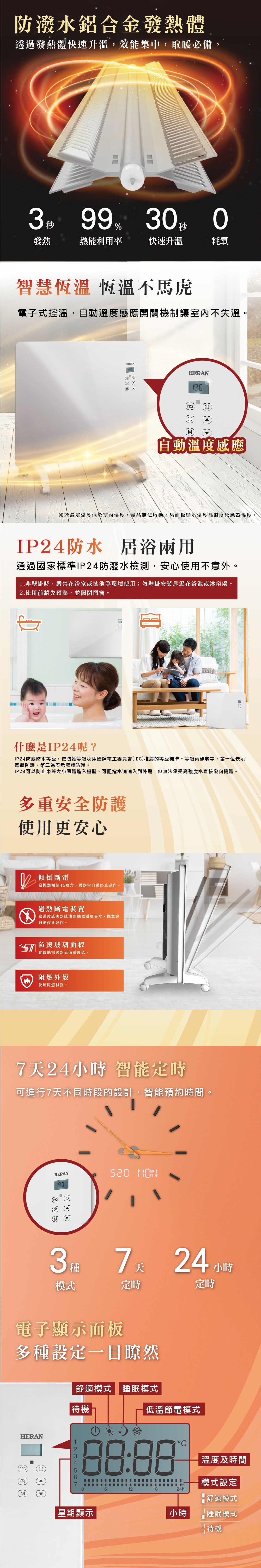 禾聯鏡面對流式電子式附遙控器浴室可用電暖器HCH-10AH011