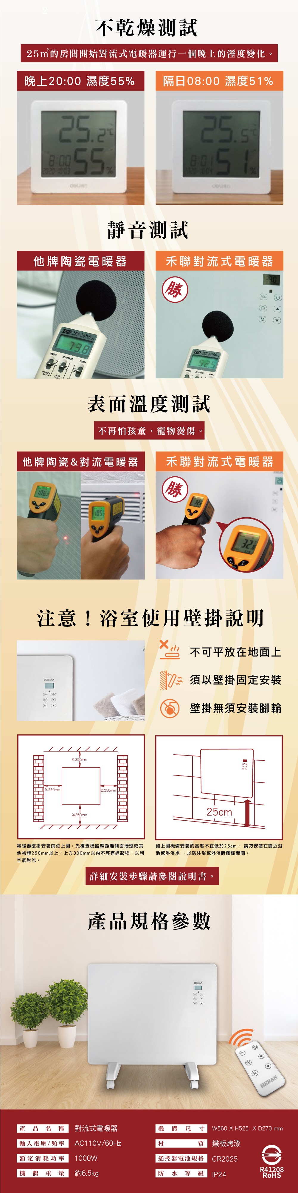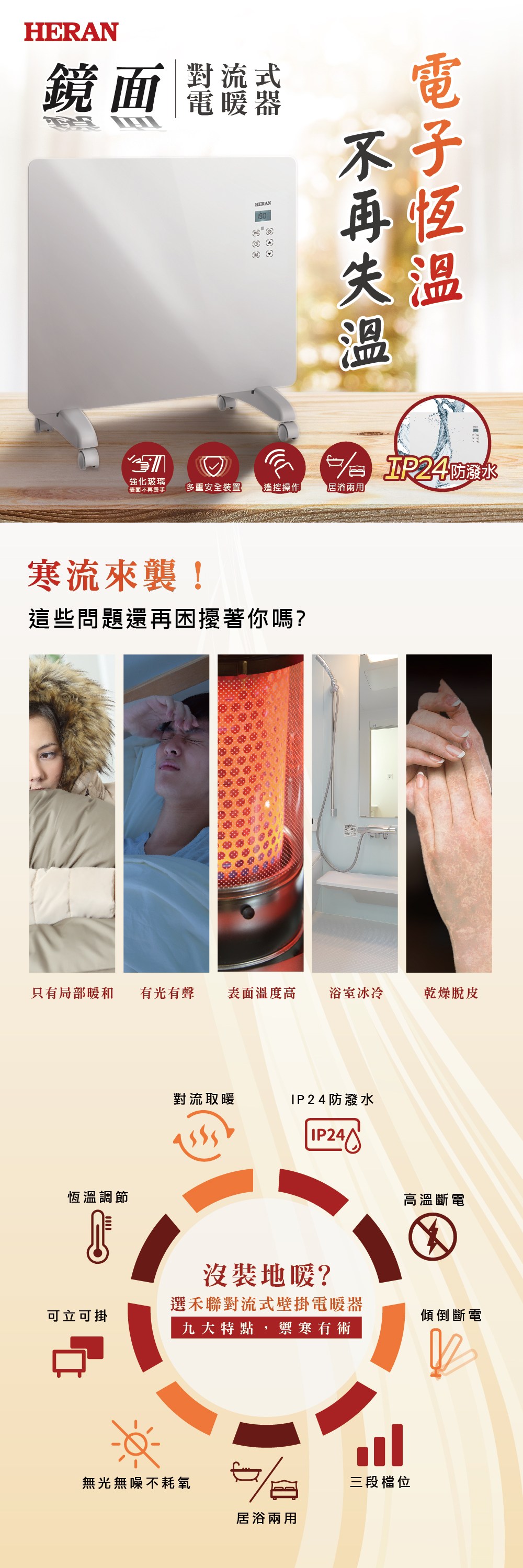 禾聯鏡面對流式電子式附遙控器浴室可用電暖器HCH-10AH011.....