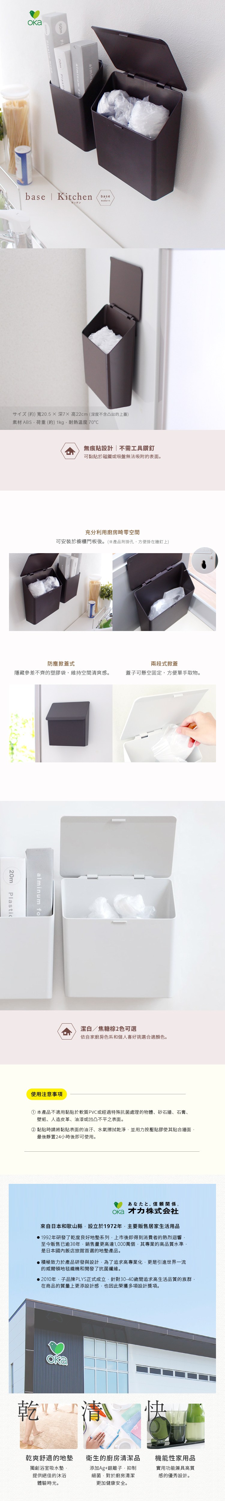 點我下載【日本OKA】PLYS base無痕貼壁掛式掀蓋塑膠袋收納盒-2色可選焦糖棕