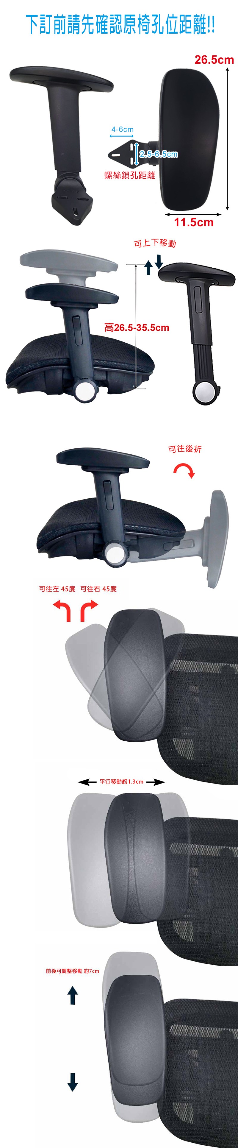 概念家居 辦公椅多元調節扶手1對 t型扶手 電腦椅扶手 電腦椅配件 可調扶手t11