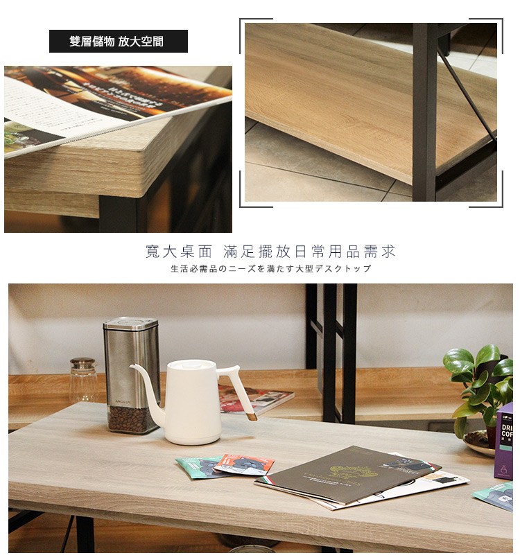 JP Kagu台灣製工業風大茶几-寬120cm(矮桌/咖啡桌/收納桌)原木色