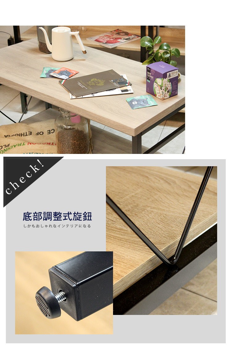 JP Kagu台灣製工業風大茶几-寬120cm(矮桌/咖啡桌/收納桌)原木色
