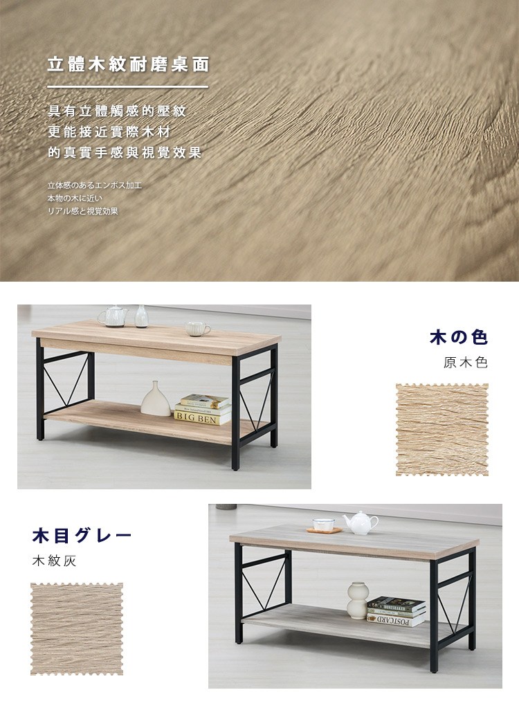 JP Kagu台灣製工業風大茶几-寬120cm(矮桌/咖啡桌/收納桌)木紋灰