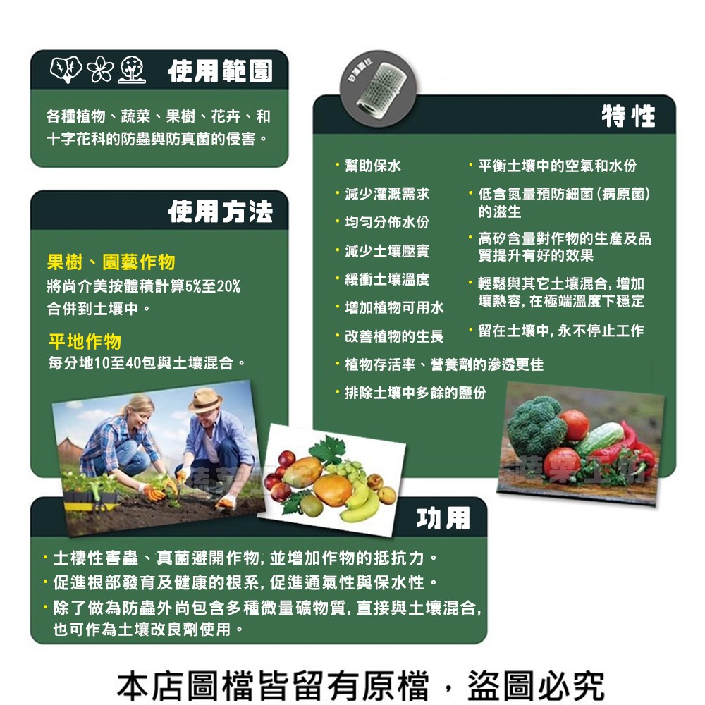 ●除了做為防蟲外尚包含多種微量礦物質,直接與土壤混合,也可作為土壤改良劑使用。