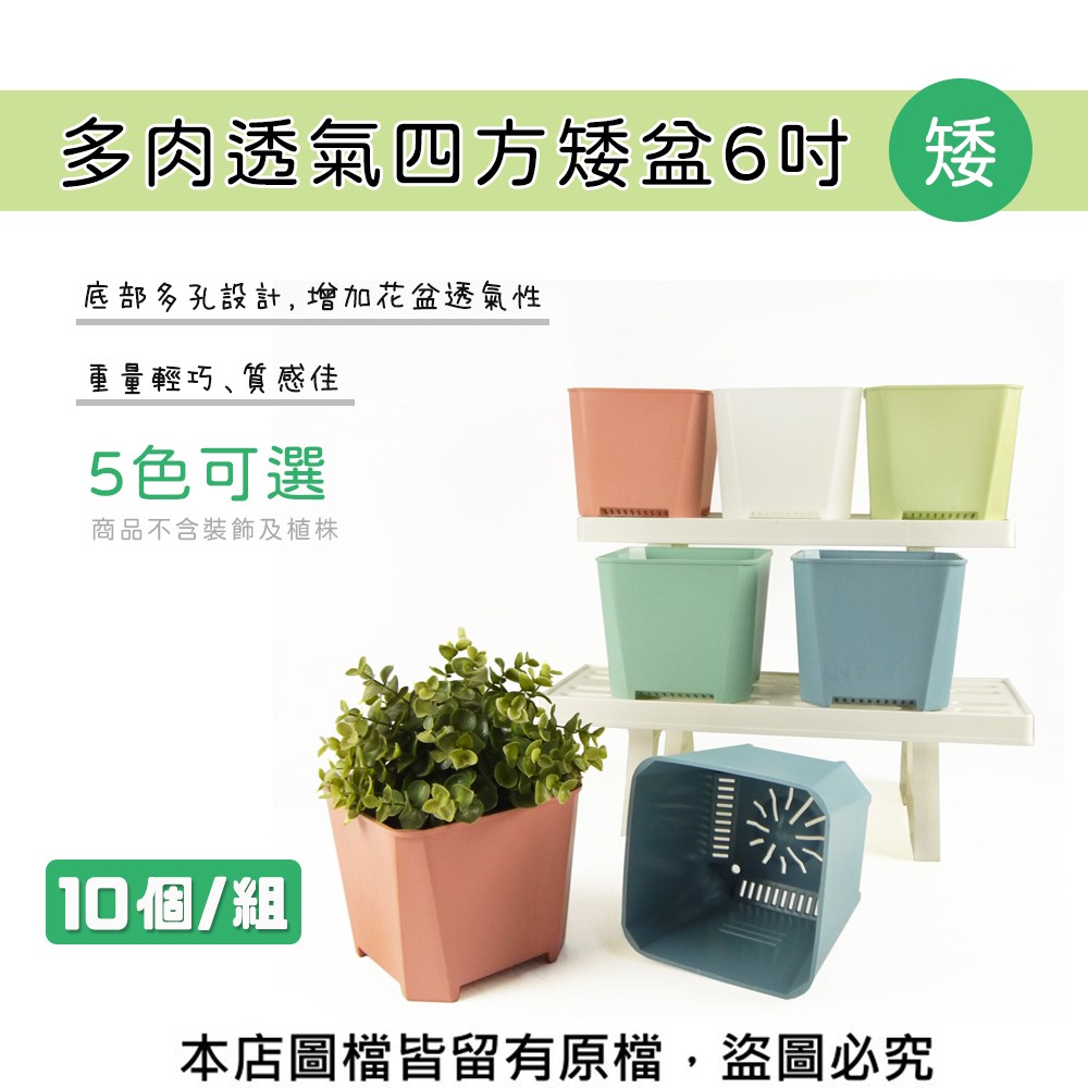 【蔬菜工坊】多肉透氣四方矮盆6吋(矮) 10個/組 (共5色可選)