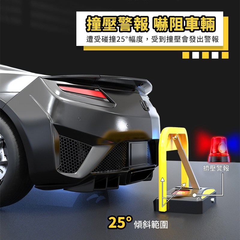 新三杆型擋臂設計,鎖得住才是硬道理!解決了180度防撞車位鎖擋臂容易被壓下去的問題,真正實現了既能鎖得住又能防撞的理想狀態。性能穩定,鎖死+防撞+報警+抗壓+防水+可充電,就是好用!