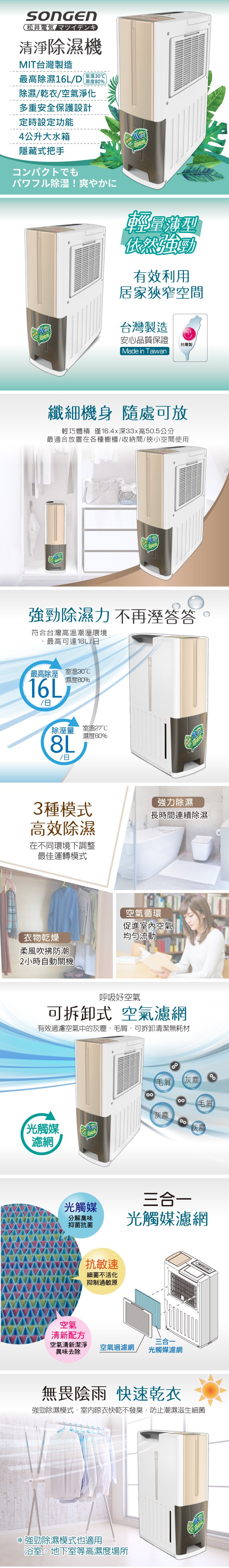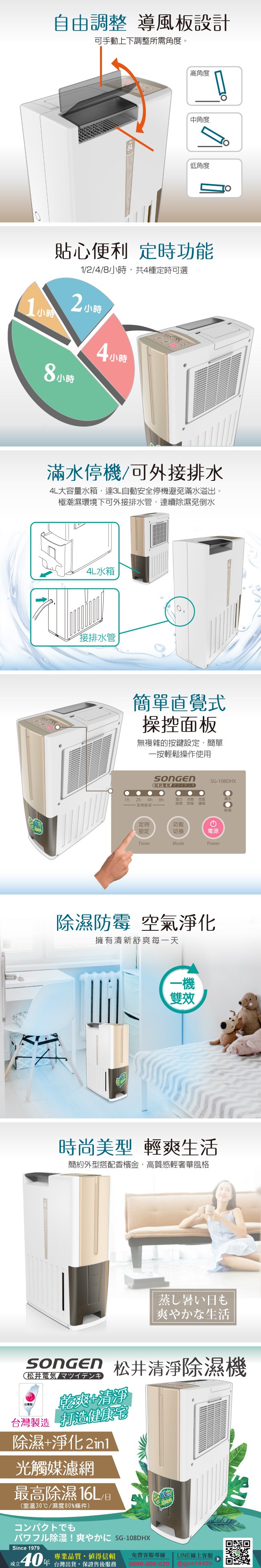 日本SONGEN松井 16L一機雙效清淨除濕機SG-108DHX