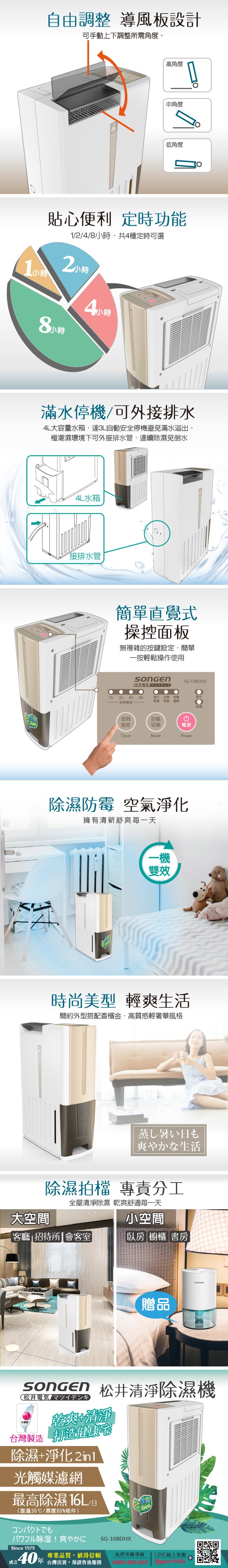 【日本SONGEN】松井清淨除溼機(SG-108DHX贈精巧除濕機)