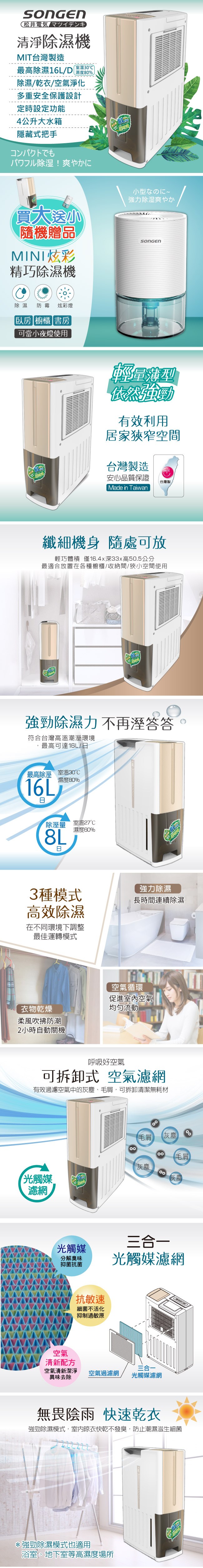 日本SONGEN松井 16L一機雙效清淨除濕機SG-108DHX