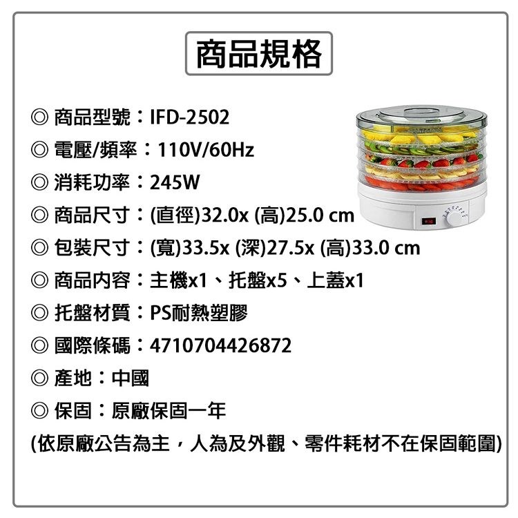 imarflex伊瑪 五層式低溫烘培溫控乾果機 IFD-2502