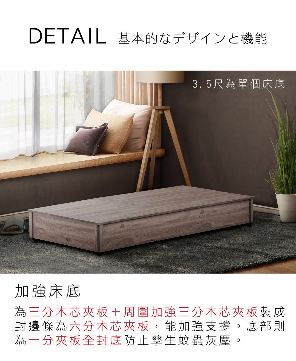 【UHO】灰橡色3.5尺單人加強床底