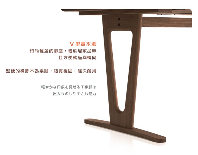 ◆ 橡膠木V腳座,方便就座