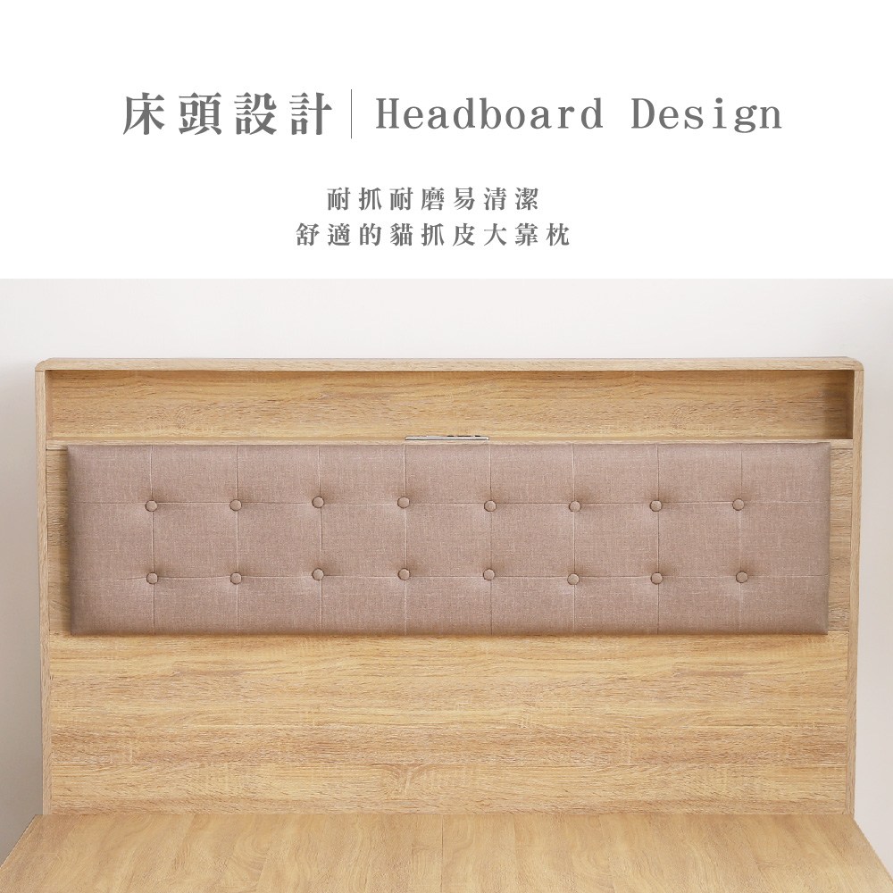 【本木】捷絲 貓抓皮靠枕插座房間二件組-單大3.5尺 床頭+三抽床底單大3.5尺