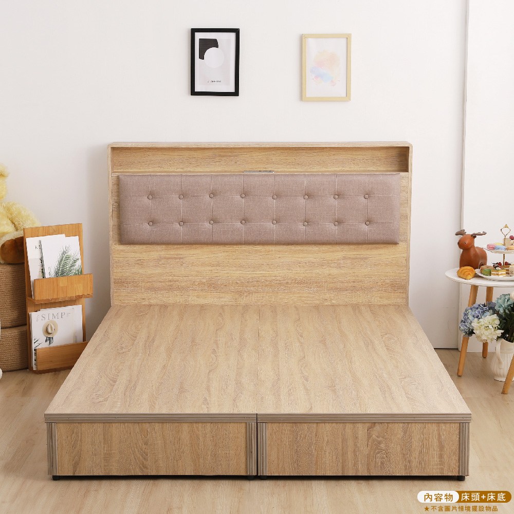 IHouse-沐森 房間2件組(插座床頭+收納抽屜底) 雙人5尺古橡