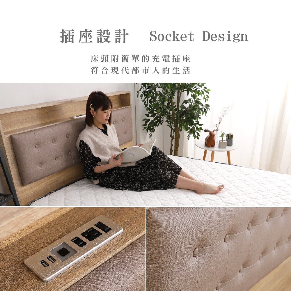 IHouse-沐森 房間2件組(插座床頭+收納抽屜底) 單大3.5尺古橡