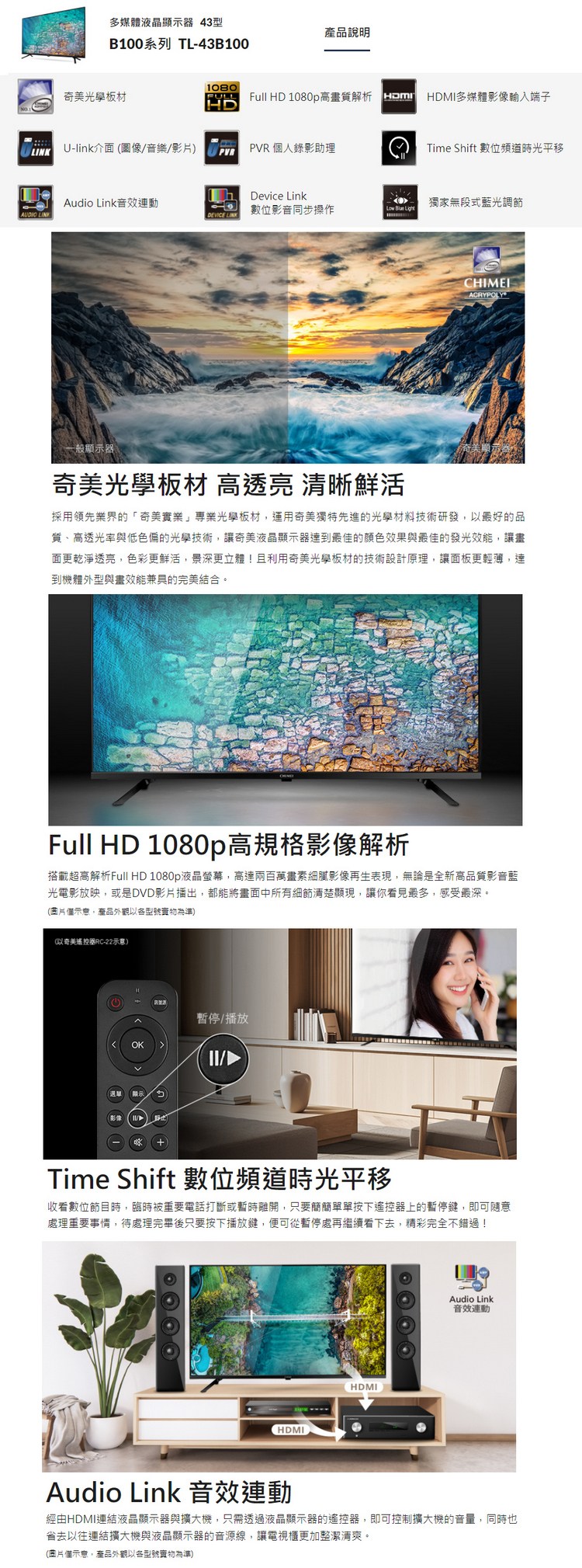 CHIMEI奇美43型低藍光液晶顯示器(無視訊盒)TL-43B100~含運不含拆箱定位