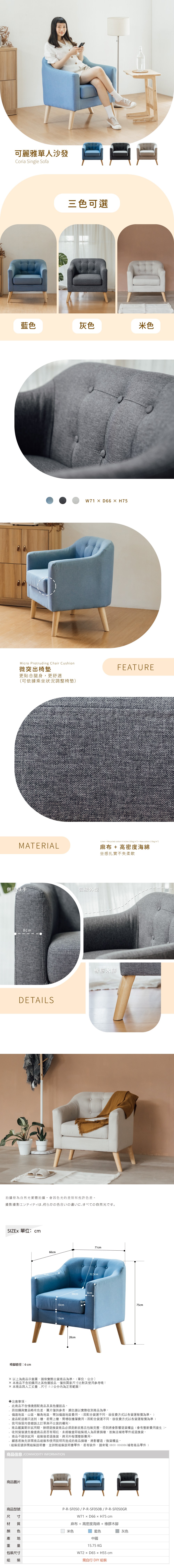 Homelike 喜家居單人座亞麻布沙發(深灰色)(2425)
