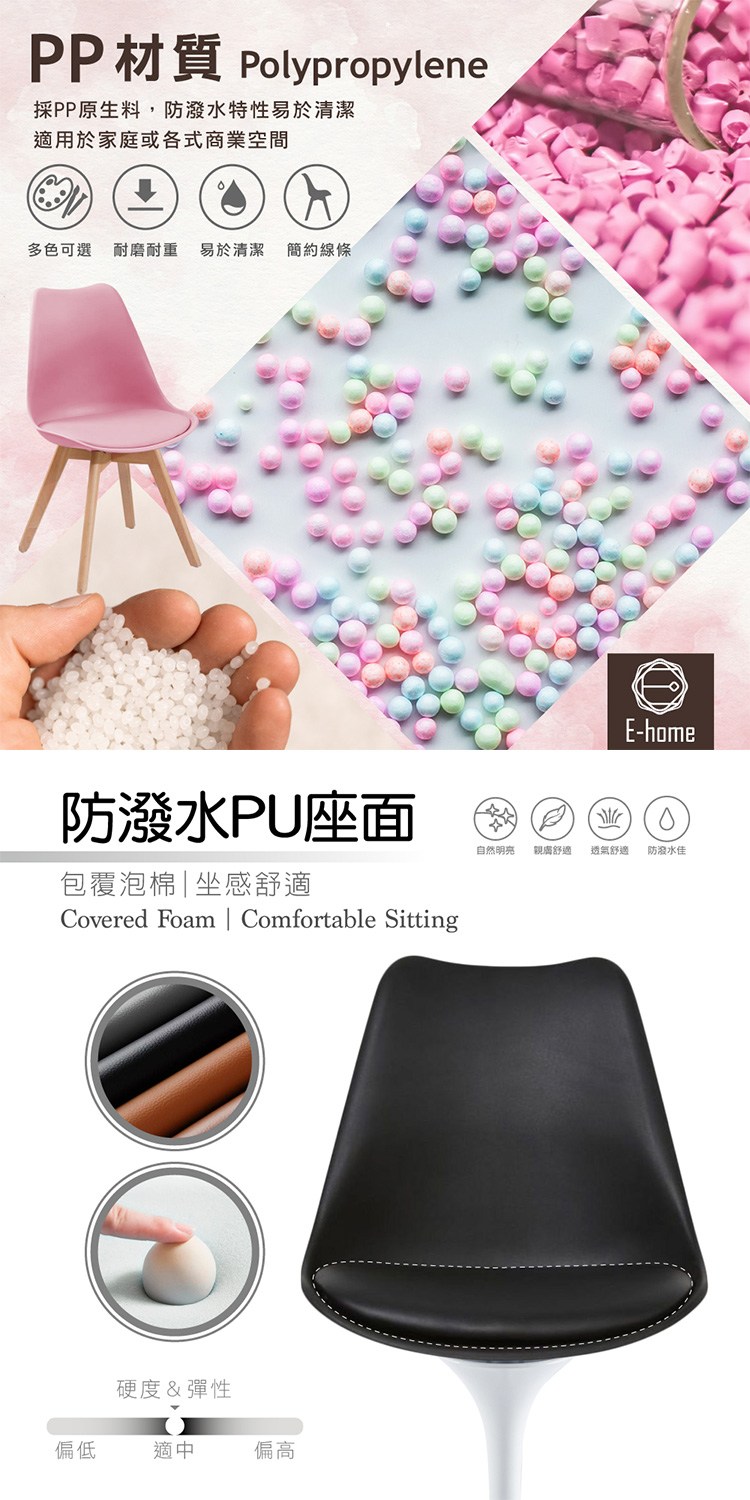 台灣與歐美同步販售、美規設計,符合人體工學、高品質P.P.椅背,防潑水PU包覆泡棉座,坐感舒適,