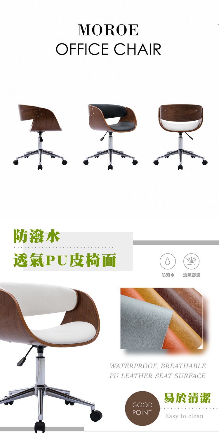 台灣與歐美同步販售、美規設計,防潑水透氣PU皮椅面、易於清潔,環形鏤空椅背設計提供背部支撐,