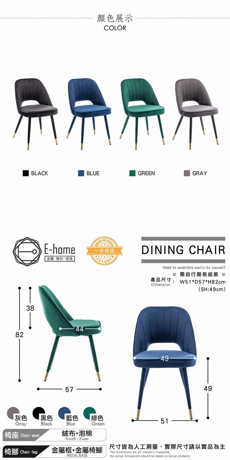 台灣與歐美同步販售、美規設計,低調而又不失華麗的天鵝絨座面,直紋車縫扇形鏤空椅背增顯時尚,