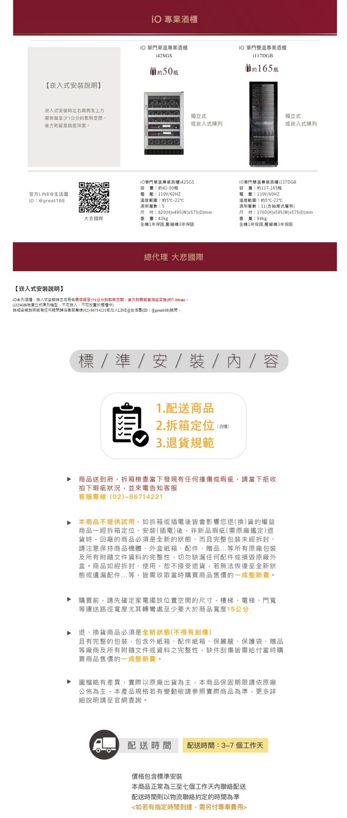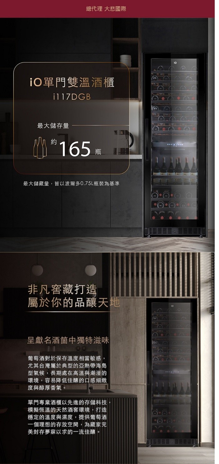 111/11/30前贈氣炸烤箱 AFO-03D io 單門雙溫專業酒櫃 i117DGB