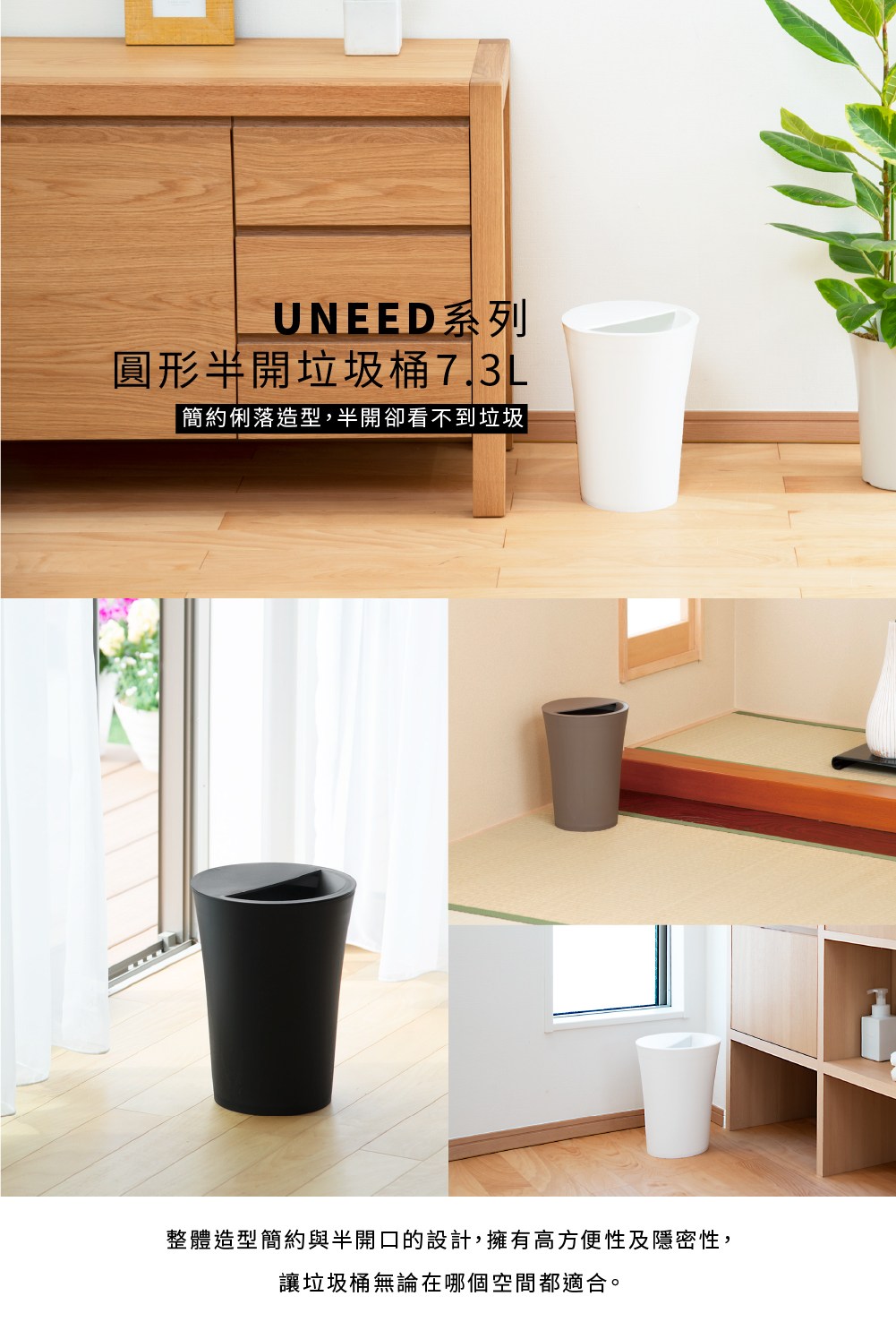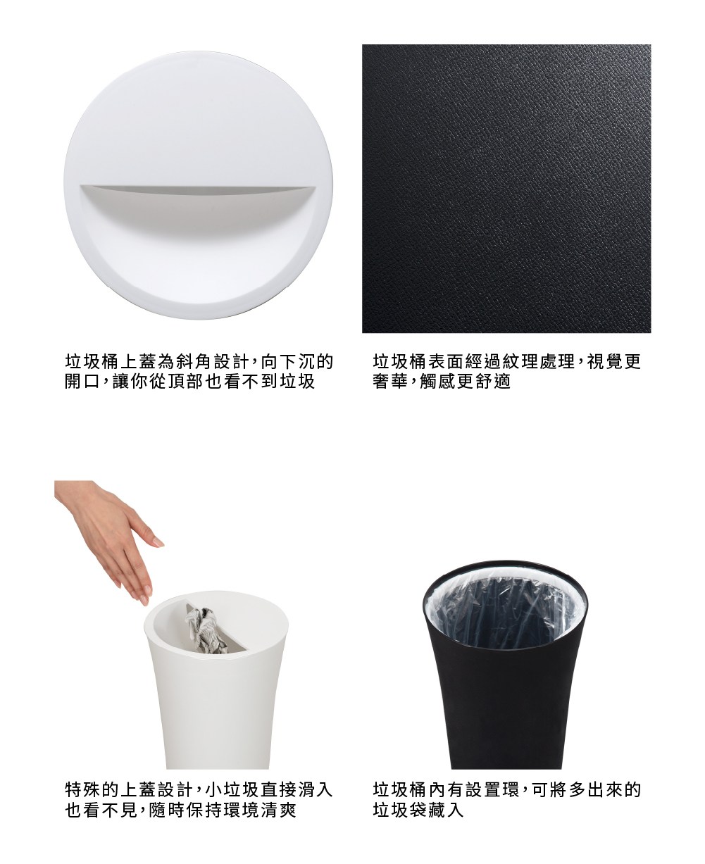 【日本TONBO】UNEED系列圓形半開垃圾桶12L黑色