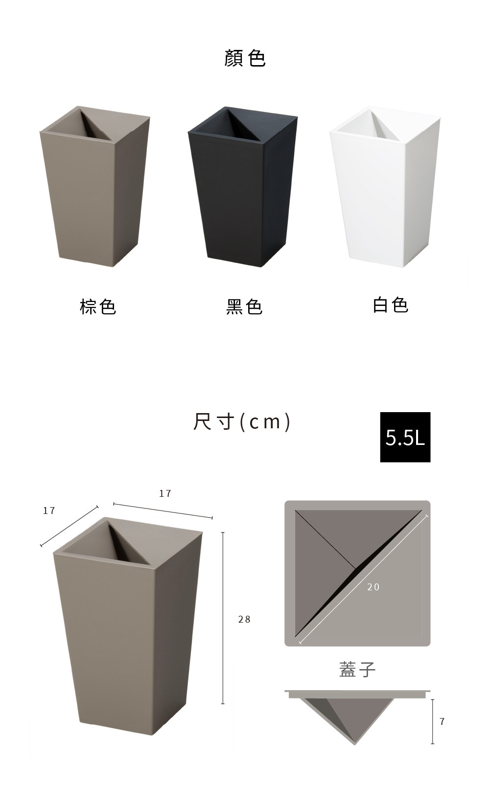 【TONBO】UNEED系列方形半開垃圾桶5.5L
