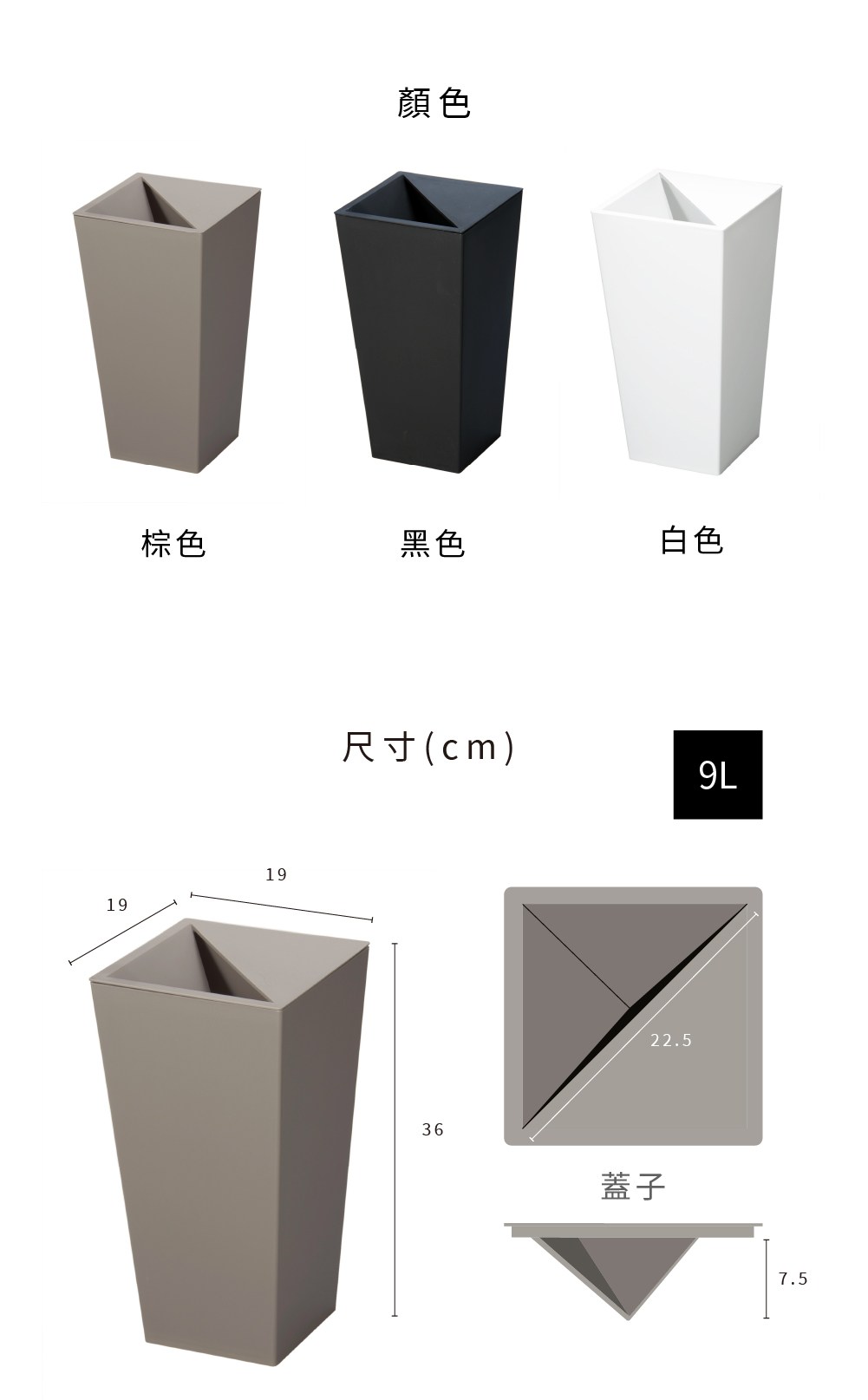 點我下載【日本TONBO】UNEED系列方形半開垃圾桶9L棕色