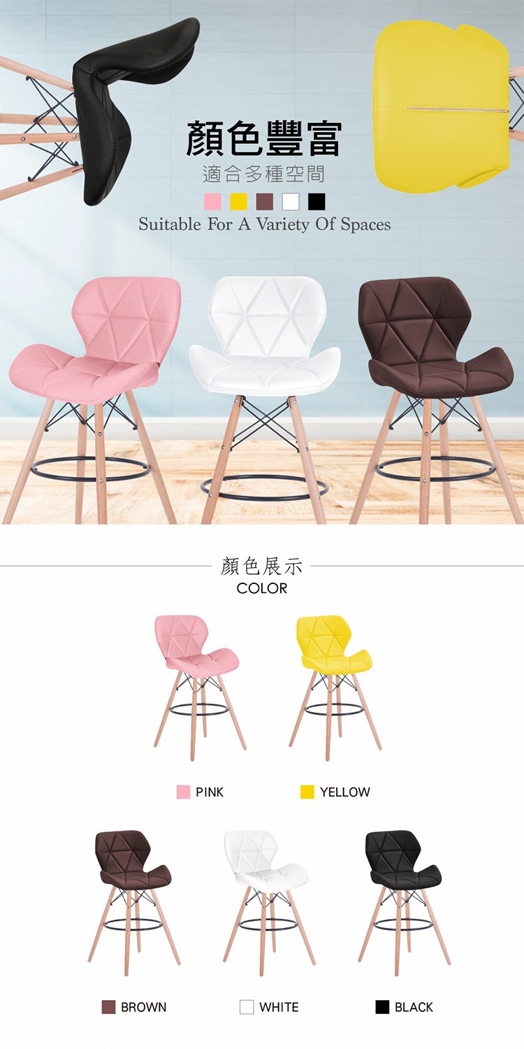 吧檯椅底部設計橫桿可舒適踩踏,附贈防刮腳墊、耐磨並保護地板,顏色豐富好搭配,適合多種空間,