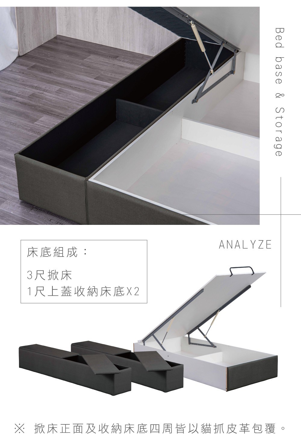 【IHouse】御匠手作系列-單大3.5尺 收納貓抓皮2抽屜床底 /木心板床架床座 (台灣製)