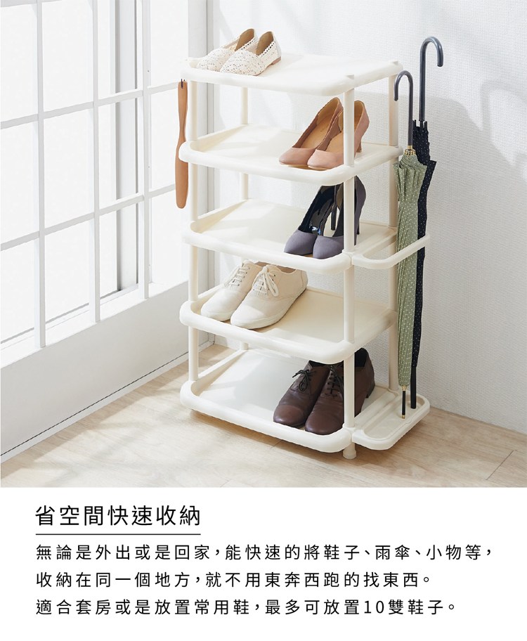 【ikloo】日系質感加寬五層開放鞋架 (白橡木)