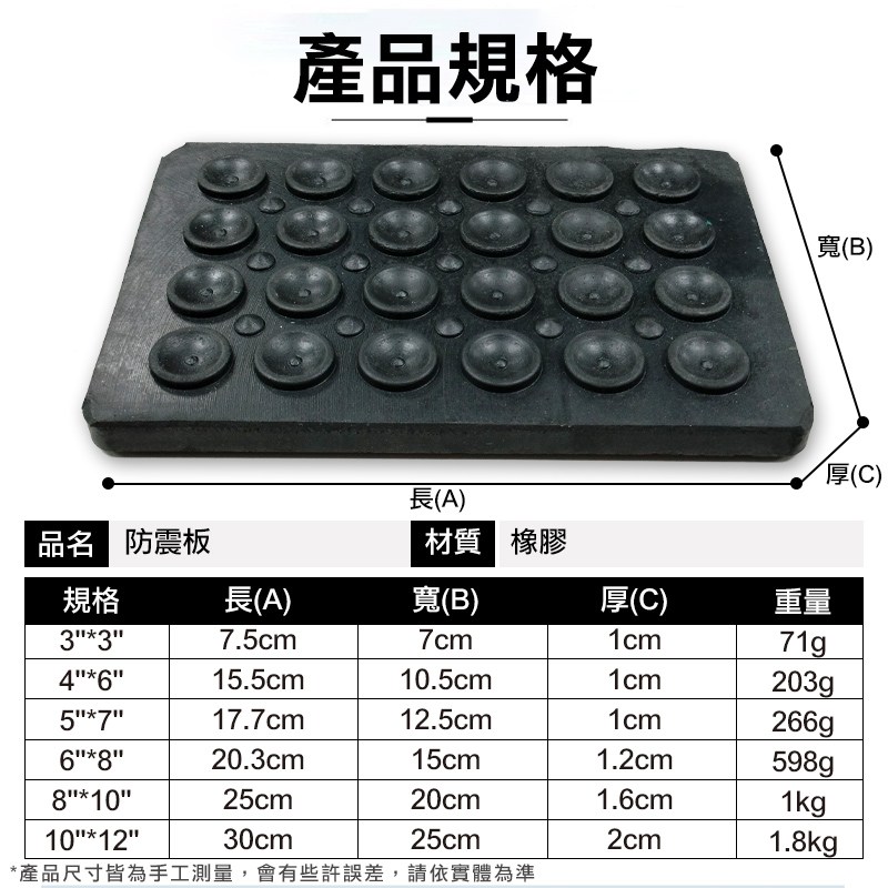 防震板4"x6" 防震墊/減震墊/避震墊/橡膠墊/調整腳/防振墊/馬達墊/緩衝墊