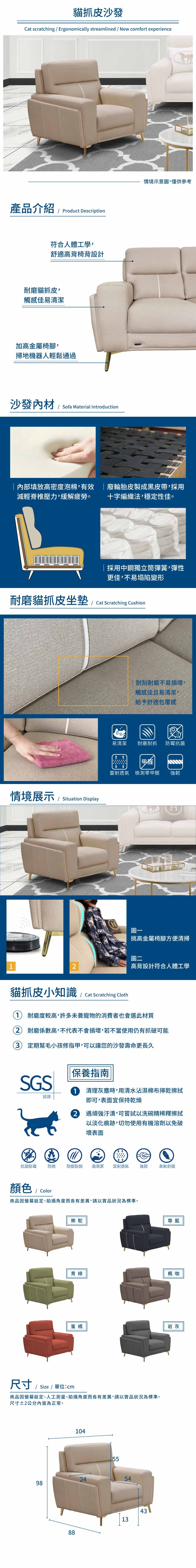 ASSARI-美樂耐磨單人座貓抓皮沙發