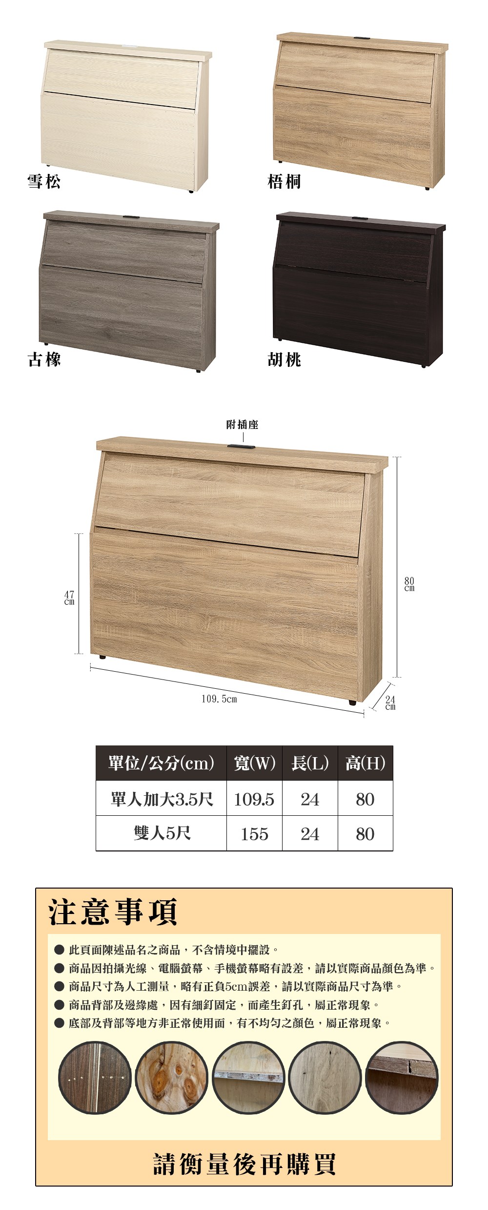 ASSARI-安迪插座床頭箱(單大3.5尺)梧桐