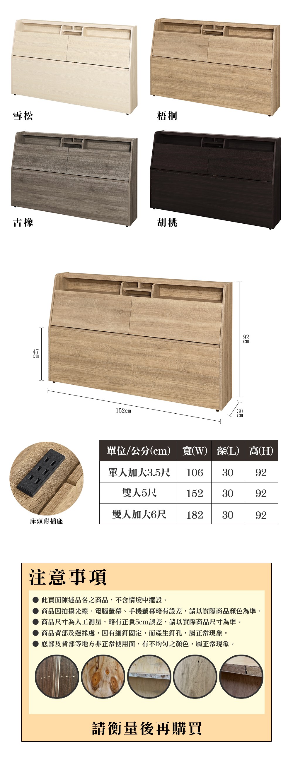 【顛覆設計】樹願插座收納床頭箱(雙大6尺)古橡色