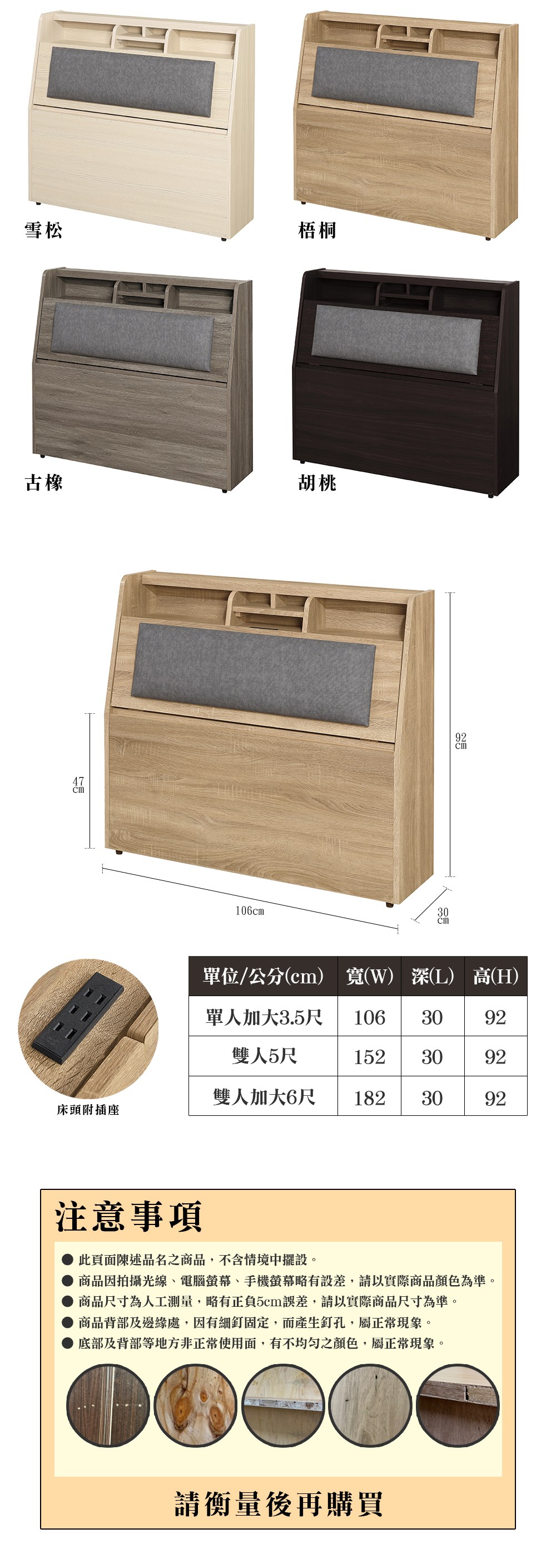 ASSARI-宮本收納插座床頭箱(雙大6尺)梧桐