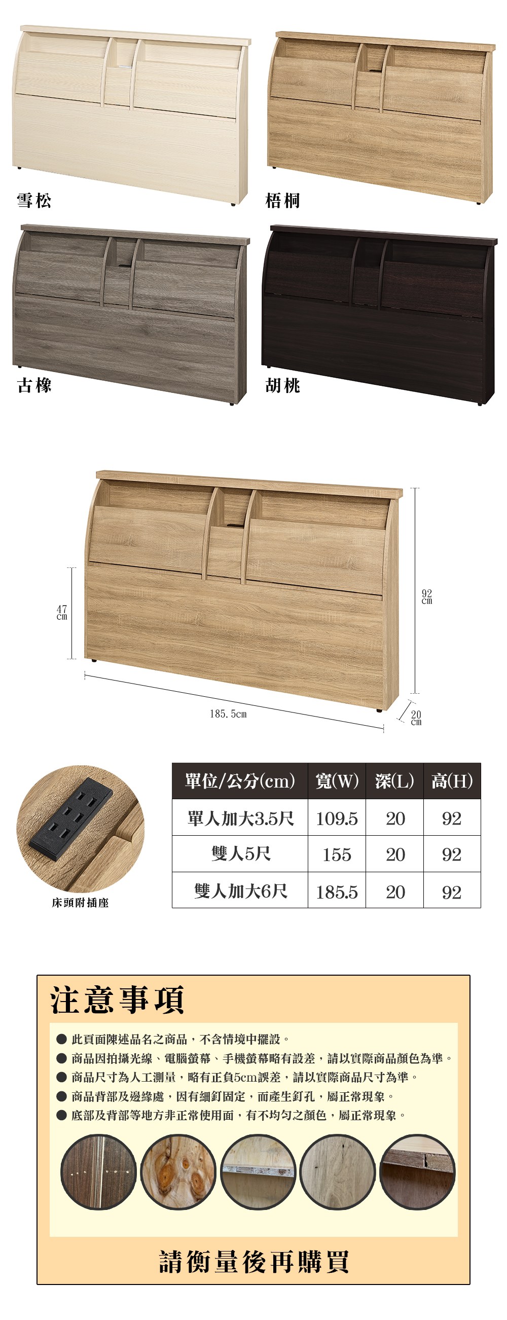 【顛覆設計】樹願插座收納床頭箱(雙大6尺)梧桐色