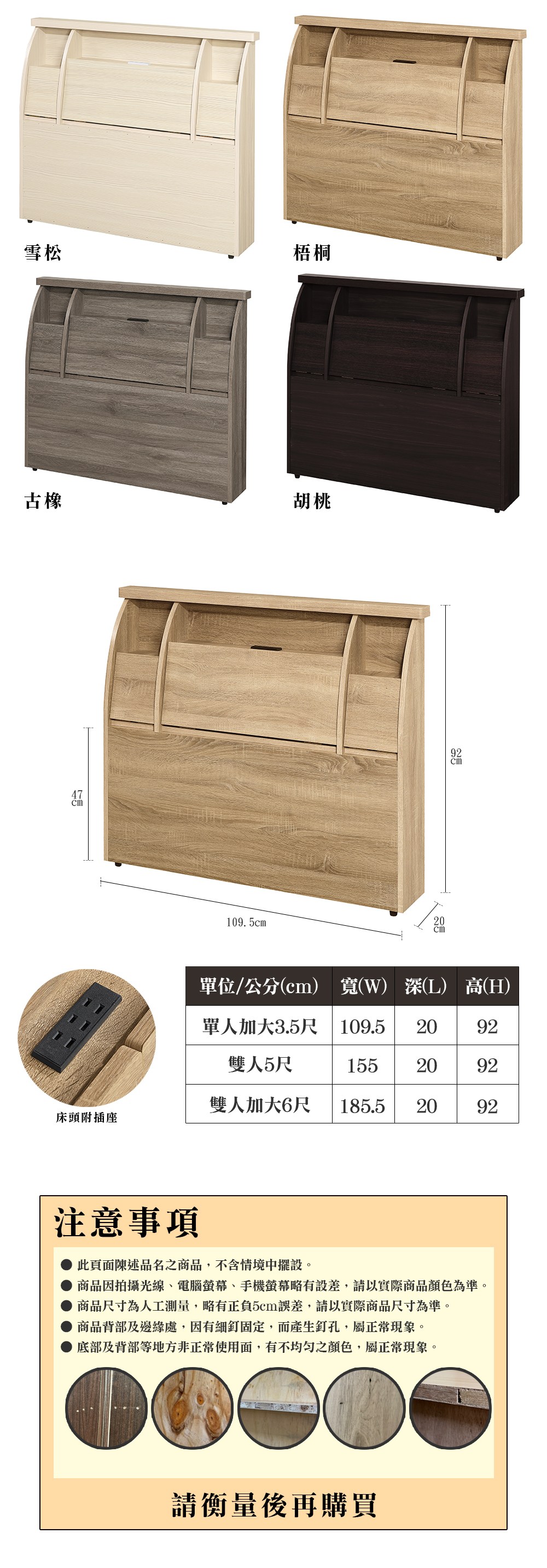 【顛覆設計】樹願插座收納床頭箱(單大3.5尺)古橡色