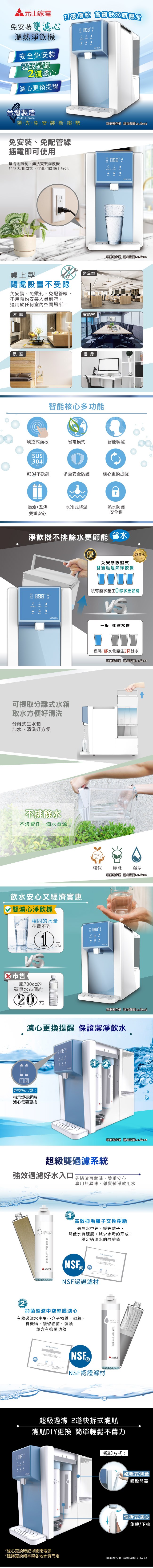 【元山】免安裝移動式雙濾心溫熱淨飲機