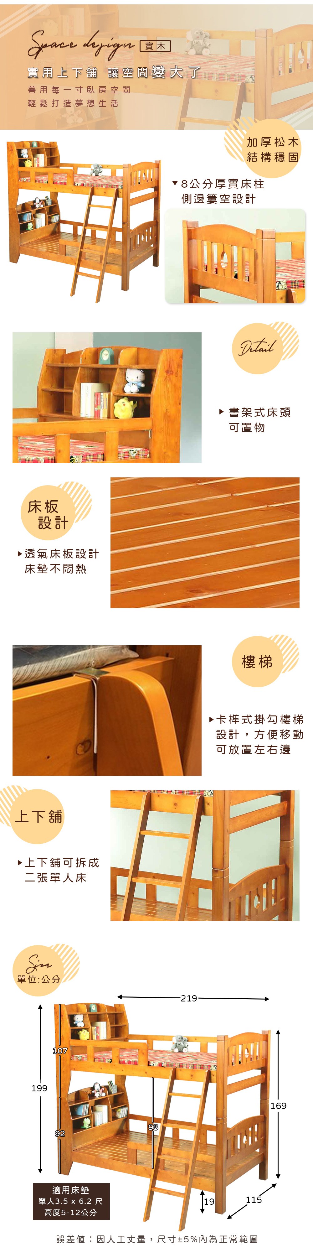 【IDEA】212CM白楊實木雙層步梯床架/上下舖(雙層床/床台/木床/子母床)