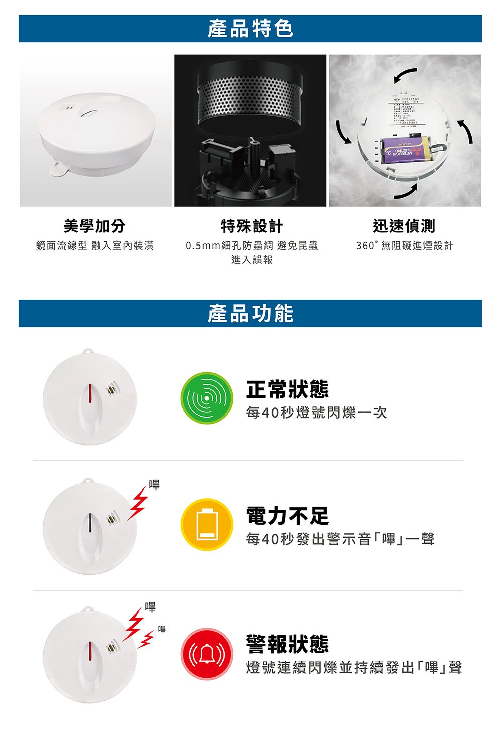 正德防火│光電式偵煙住宅用火災警報器(初階款) 2入組
