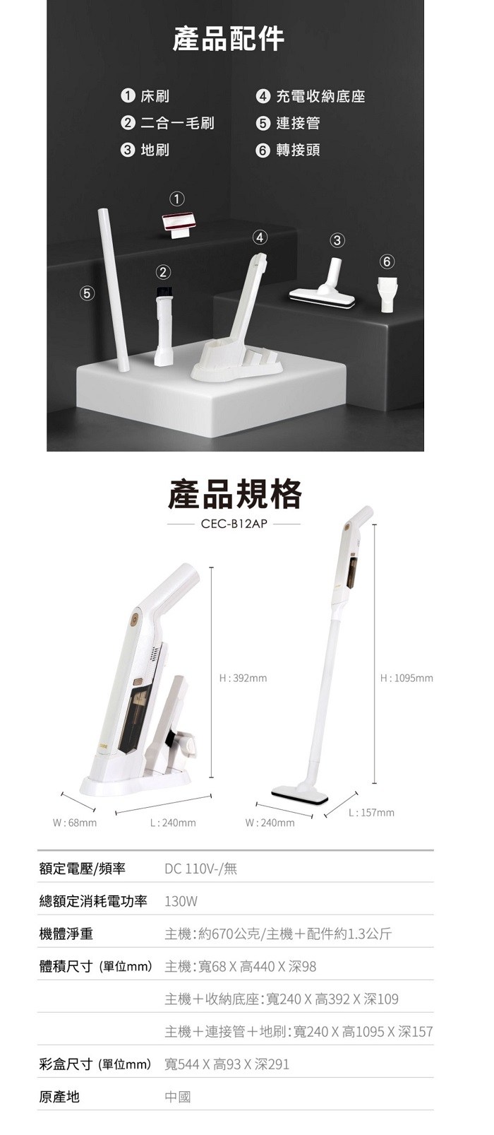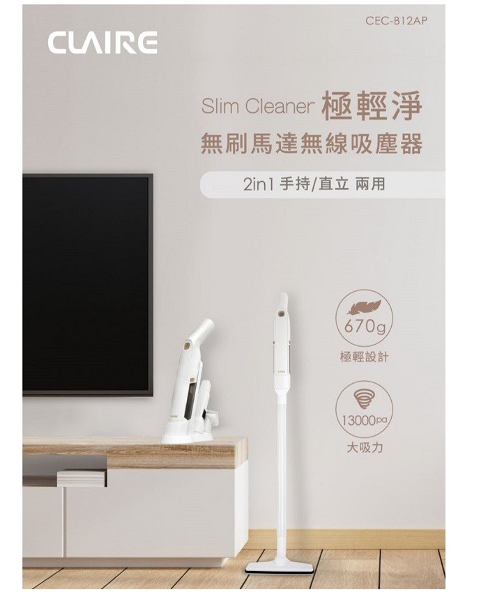 CLAIRE Cleaner極輕淨無線無刷馬達吸塵器 CEC-B12AP