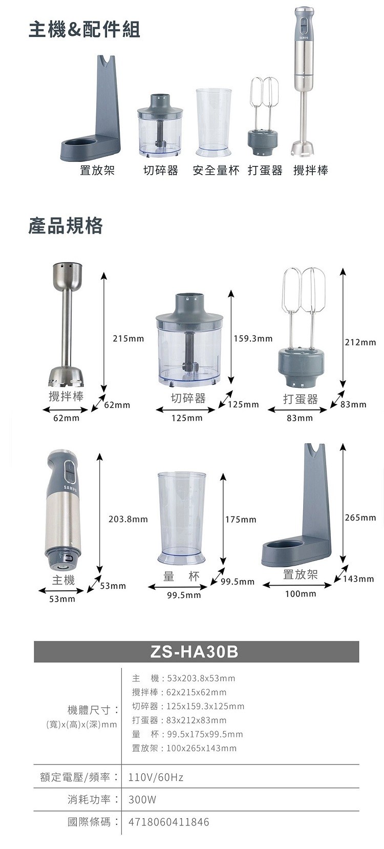 SAMPO聲寶 手持式攪拌棒 ZS-HA30B