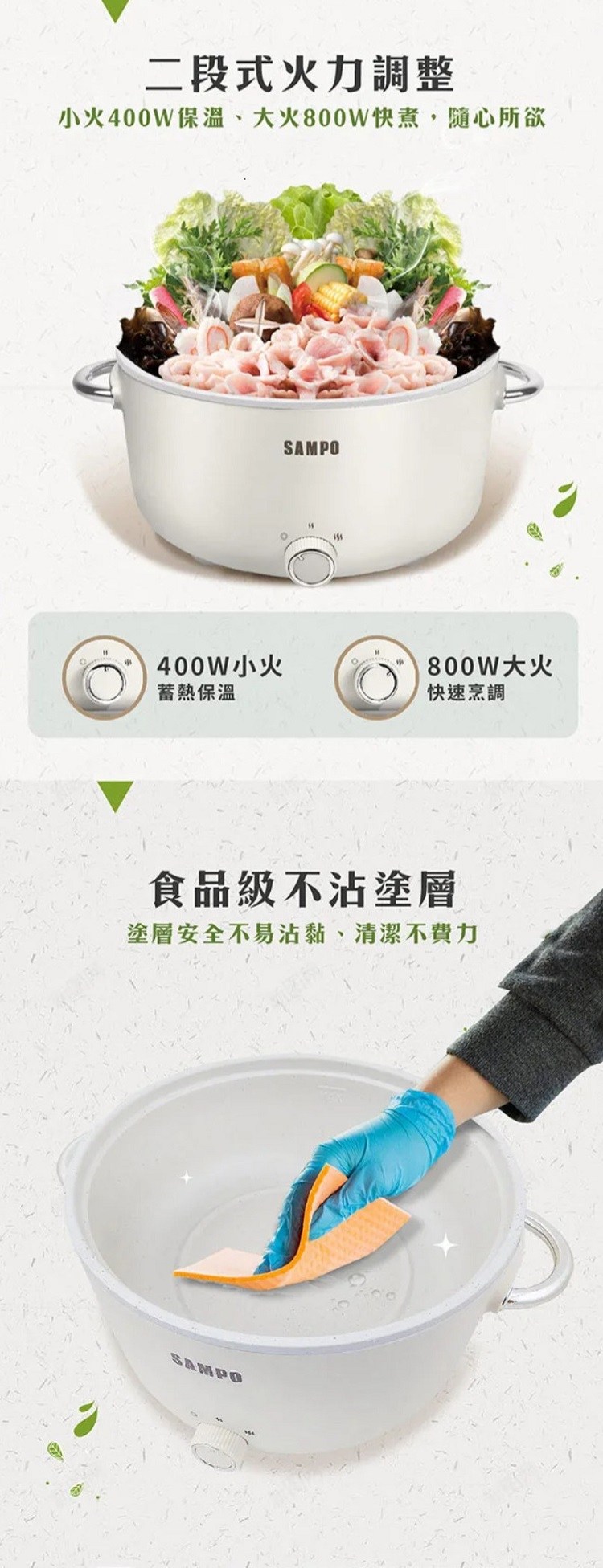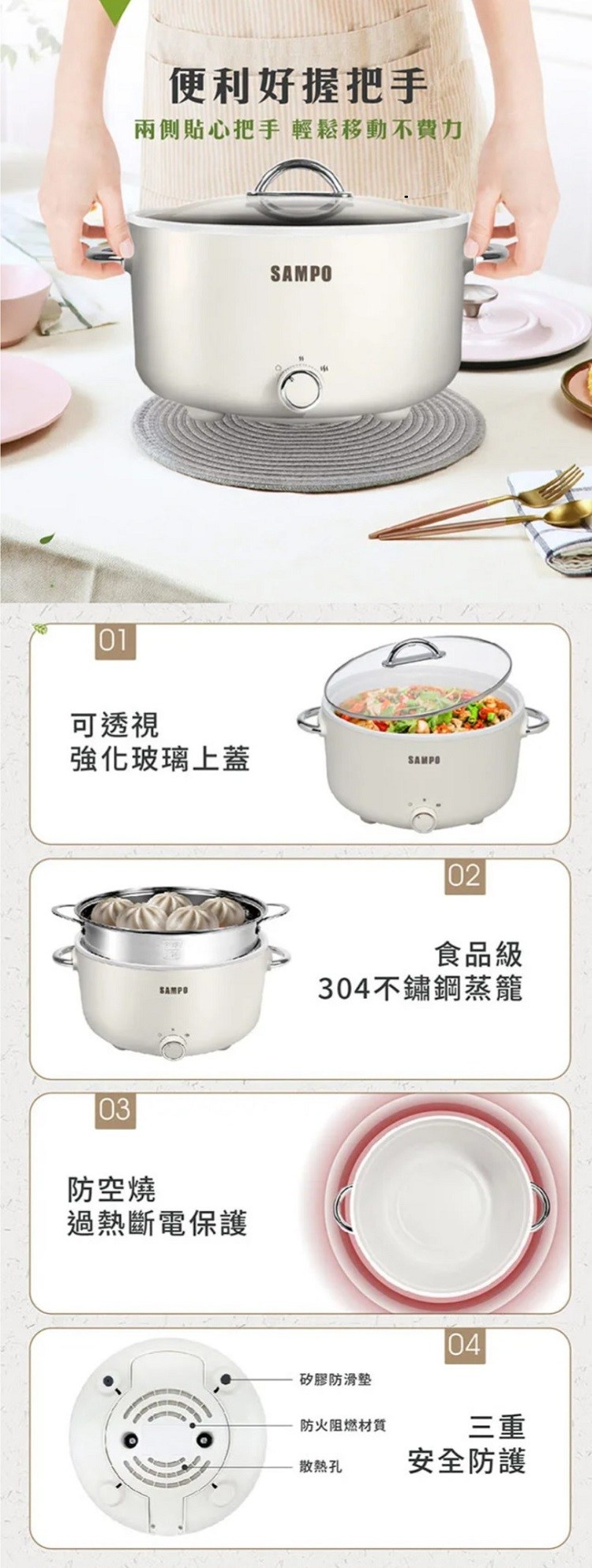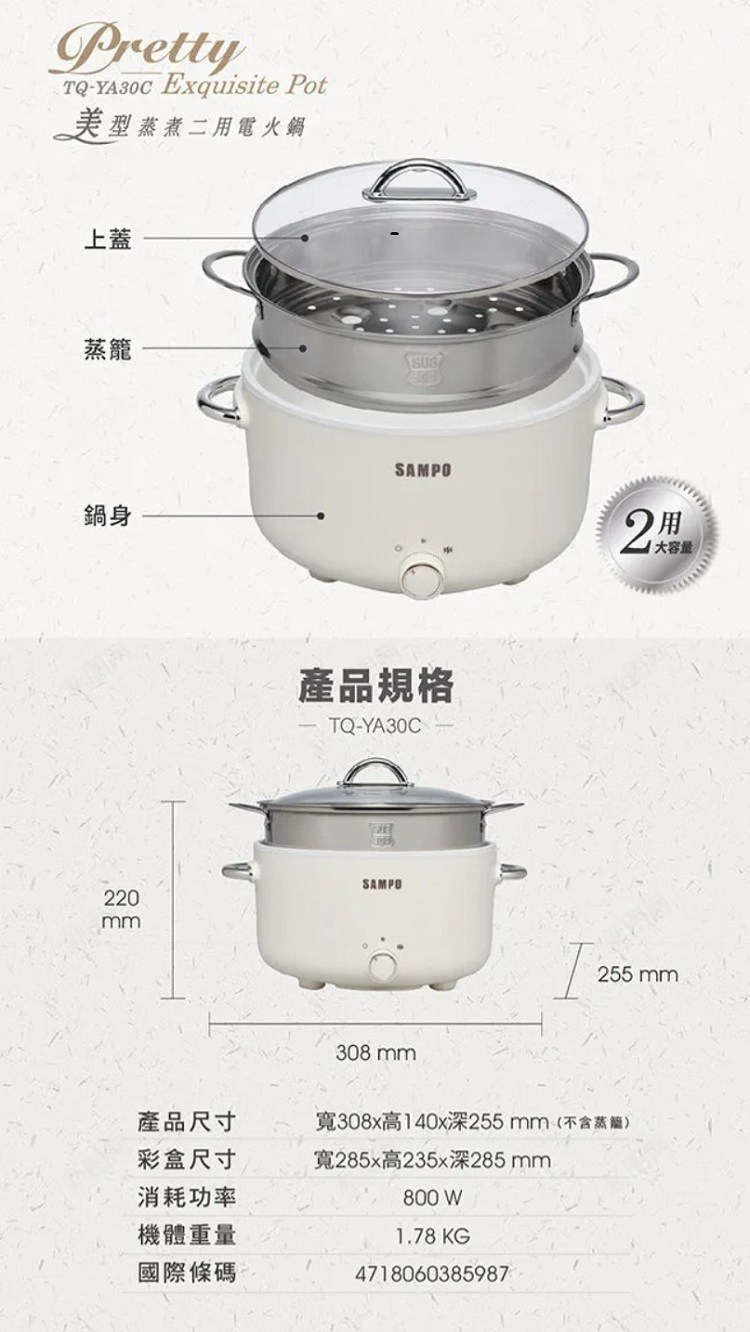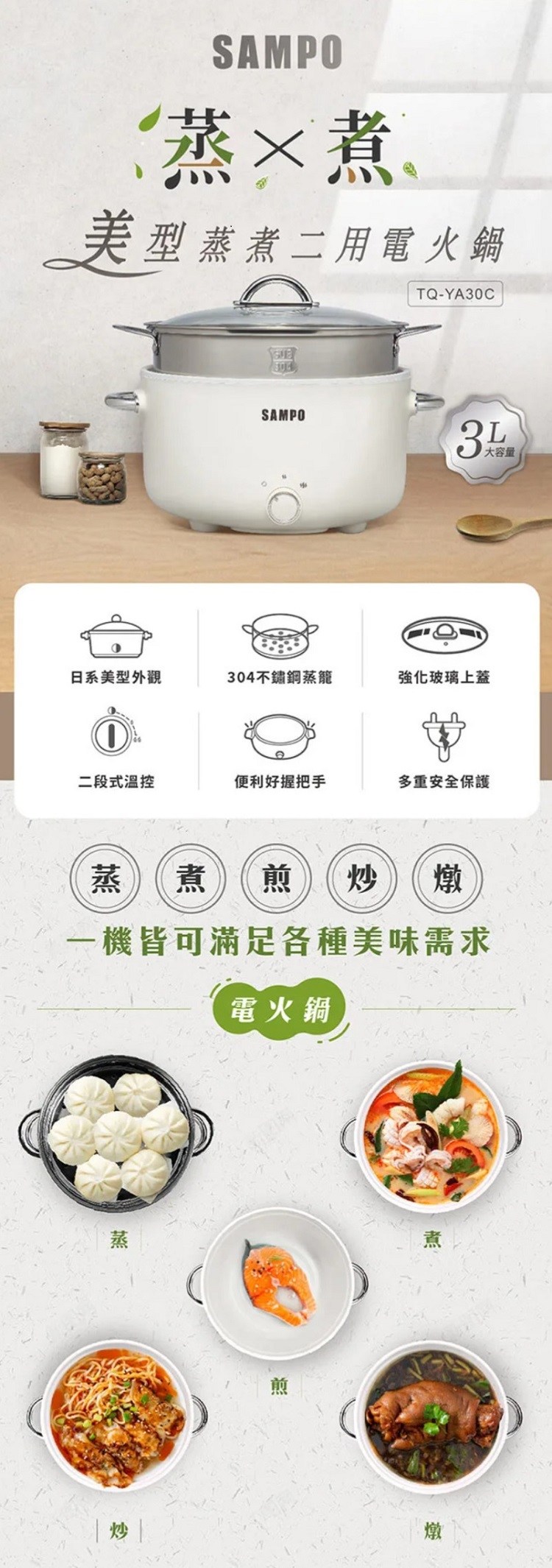 SAMPO聲寶3L美型蒸煮二用電火鍋TQ-YA30C