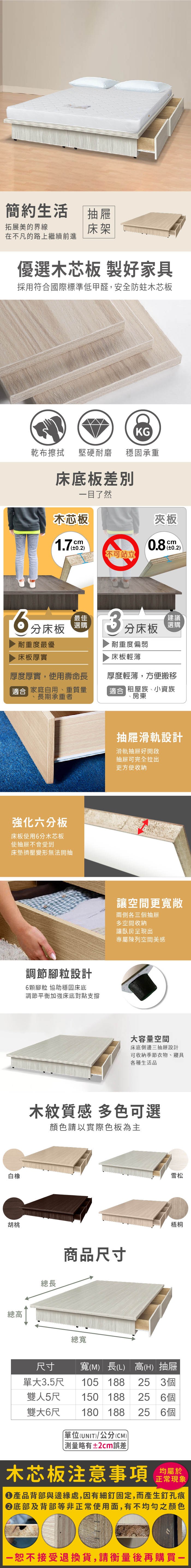 顛覆設計 抽屜六分硬床底-單人加大3.5尺白橡色